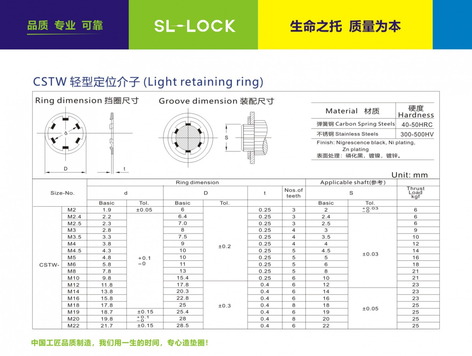 名稱:輕型孔用止動墊圈 執行標準:CRTW 型號:M2-M22 材質:65MN/C67S 表面處理:磷化黑色